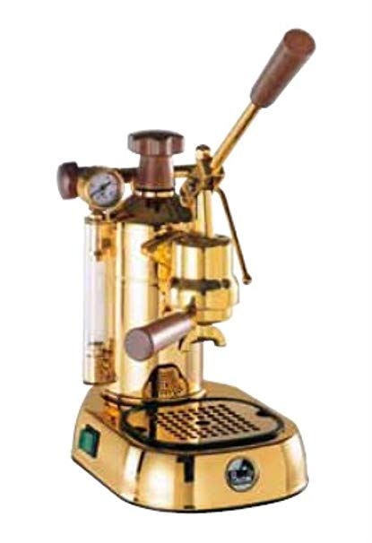 The last machine to make our list is the La Pavoni professional espresso machine. This gold machine, adorned in Brass and Copper would look equally fitting at a vintage Roman café or a steam-punk Sci-Fi movie. It is a manual action espresso machine featuring a large handle that works in two steps. Raising the handle allows water into the porta filter, which then begins to extract the coffee. In the second step, the lever is brought down forcing the water through the coffee grounds with pressure. Because you’re directly generating the pressure yourself, you have a lot of control over how the final product will turn out. With that said, manual machines are generally thought of as less consistent that the automatic bar-pump machine for obvious reasons. There’s also just no way to recreate the pressure of a 19-bar pump manually. But what this machine makes up for the lack of power with sheer esthetic, giving you that full vintage barista feel every time you pull an espresso. It also includes a steaming system, and a 2 cup portafilter so you can make 2 coffees at once with. With all that said though, the $1,300 price tag will put it out of reach for many of us.