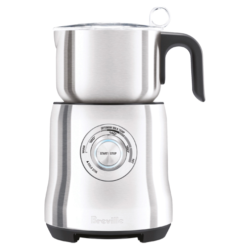 The Breville Milk Cafe is a jug style frother that merges the milk heating component and frothing together. An induction coil is used to heat the milk while a motorised whisk spins to create the foam. A single, simple dial in the front of the machine controls the device allowing you to select a range of temperatures from cold all the way to nearly boiling. The high temperature is ideal for making hot chocolate because the chocolate chips added to the milk melt easily while the machine is busy foaming. If you prefer frothing at lower temperatures for your cold drinks, that too possible with this unit. The see-through lid allows you to see the progress of frothing.