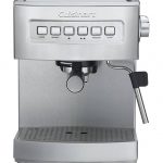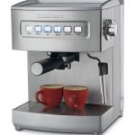 The Cuisinart EM-200 is a chic looking espresso brewing machine measuring nearly thirteen inches high and almost eleven inches long. A solidly constructed unit it weighs 25 pounds. Even though it is programmable, you have the option of overriding the pre-set functions and taking manual control so you can set your own parameters. This affords you greater control over the type of drink you brew.