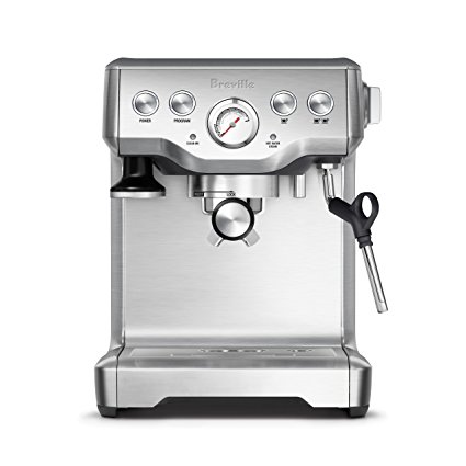 The name Breville has become synonymous with quality for a reason, and once more they have proven themselves with the BES840XL Infuser. Unlike most other machines in same price range which just blast the grounds with hot water at high pressure, the infuser first moistens the grounds with low pressure steam of water. This allows the coffee grounds to expand as water makes its way into every little gap in the coffee grinds to squeeze out all the best flavors. The result is a more even extraction and better tasting shot of espresso.