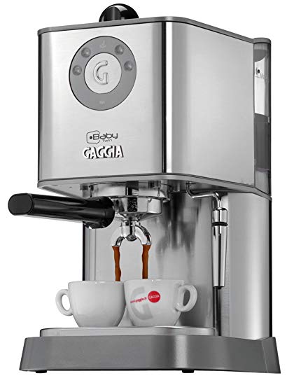 The Gaggia Baby is a semi-automatic coffee maker with the ability brew commercial quality espressos. It houses a commercial grade portability that measures 58mm fabricated out of chrome-plated brass. This metal combination provides temperature constancy needed to pull an excellent quality shot of espresso in addition to durability. Another feature that gives the Gaggia Baby a commercial machine touch is the use of 3-way solenoid valve that aids in regulating pressure and yielding a drier puck, something not commonly available in home use semi-automatic machines. If there is no time for brewing ground espresso, then the pre-measured, packed, and tamped Easy Serve Espresso pods can just be popped into the. For cappuccino, latte or macchiato lovers who cherish gourmet style coffees, the Turbo frother on the Baby Class allows for easy steaming. The ball joint mount makes it easier to accommodate pitchers of every size, and doubles as hot water dispenser for tea, Americano or hot chocolates. The 60 ounce water tank ensures that there is plenty of water to last the day and a cup warmer maintains the temperature of the shot of espresso without letting it cool down due to cold cups.